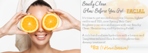 Beachy Clean Before You Go Facial. You can also get your arms and hands hydrated with Tangerine and Lemon infused Shea Butter.